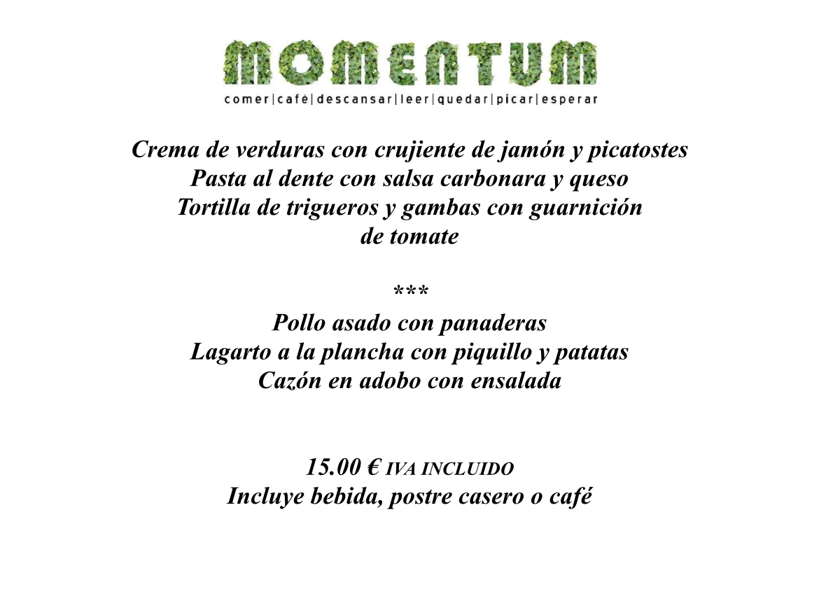 Momentum Restaurante Bar, located in the heart of Leganés, Madrid, offers a vibrant menu that perfectly balances quality, quantity, and price. This local gem shines with its varied bocadillos priced at €4.50, hearty hamburguesas for €8, refreshing ensaladas at €9, and generous platos combinados for €10. The midday menú, around €13, stands out for its thoughtfully crafted dishes, such as merluza en salsa verde with clams and a delightful milhojas dessert. Customers rave about the incredible attention to detail, from the perfectly executed trigueros with jamón to the standout mejillones tigre rebizados.